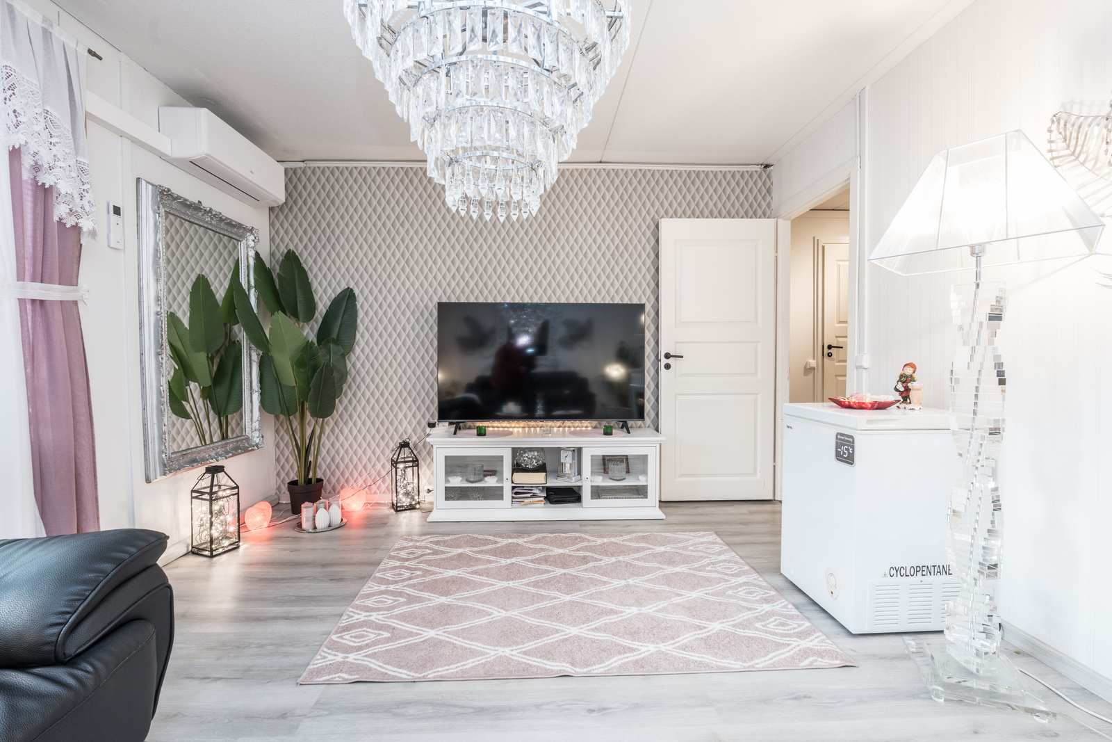 | Olohuone | Olohuoneesta käynti parvekkeelle. Parvekelasitus tehty 2022. Vinyylilattia asennettu 2025. Lattia: vinyyli |