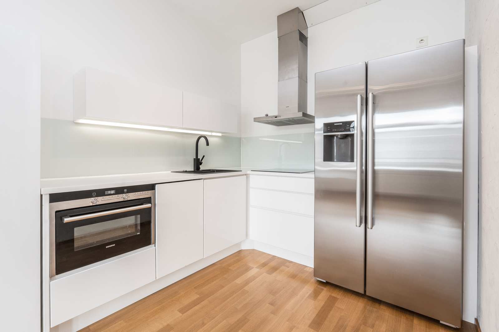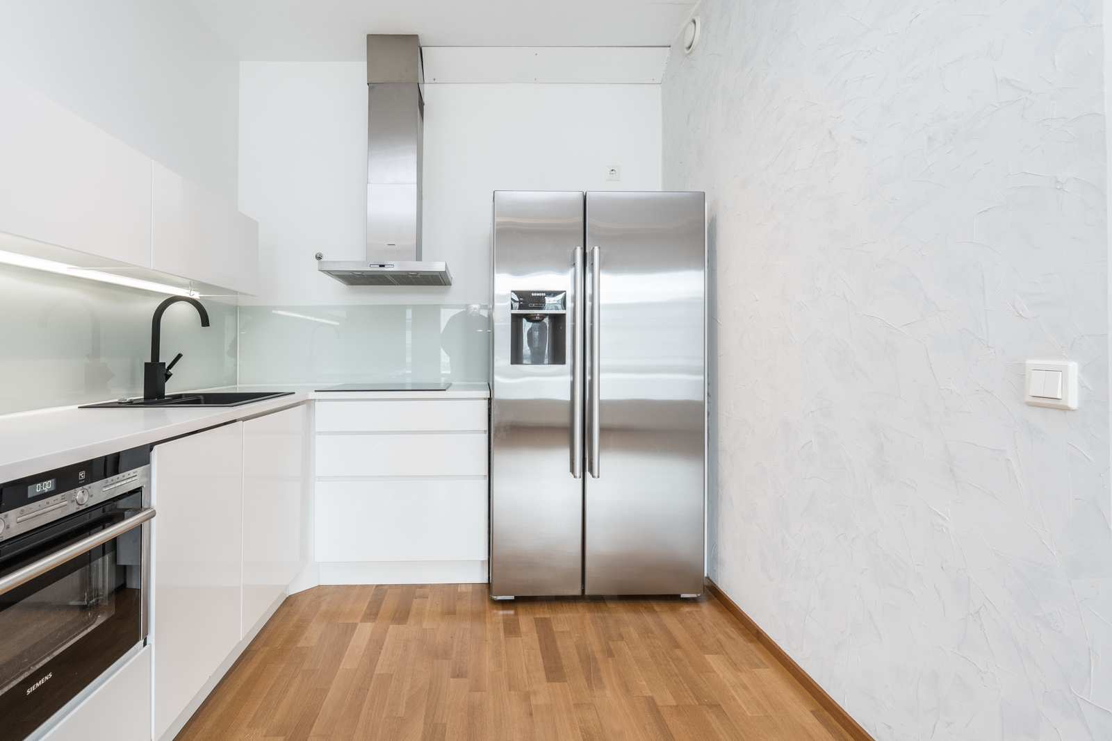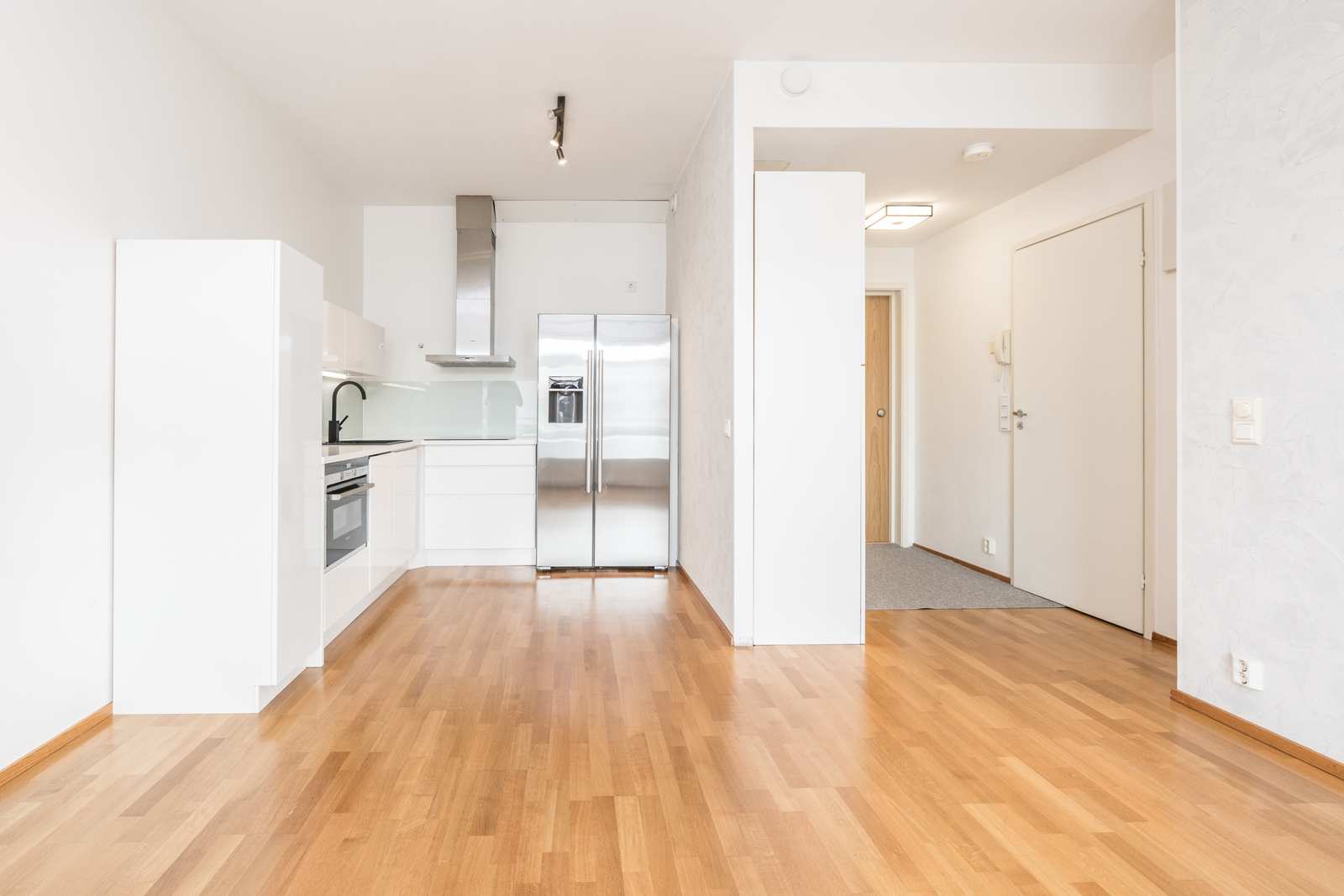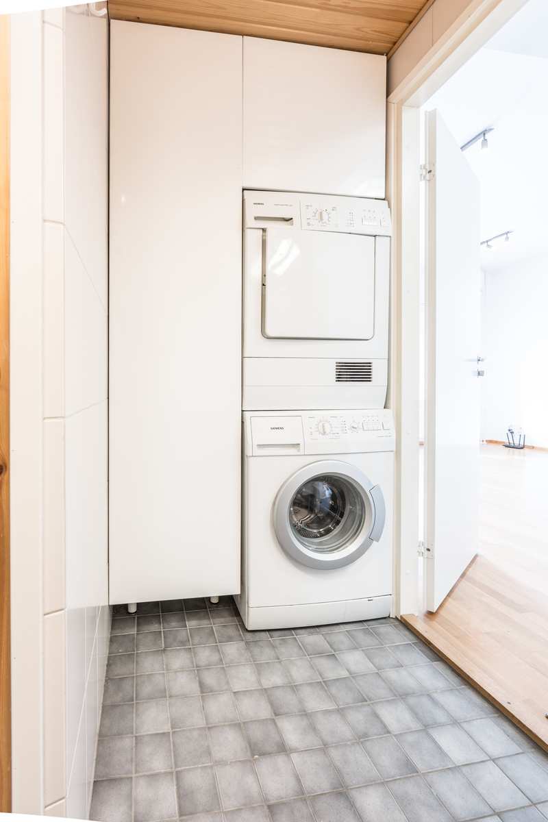 Keittiön varustus | Jääkaappi ja pakastin: jääkaappi/pakastin Muut varusteet: liesituuletin, mikroaaltouuni, astianpesukone, kiinteät valaisimet Tasot: laminaatti Seinät: maalattu Lattia: parketti Liesi/uuni: induktio |
