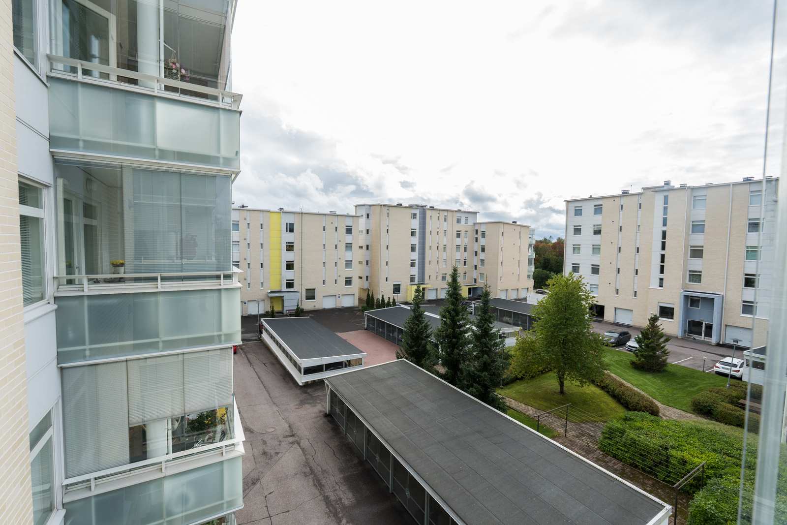 Näkymät | Kauniit näkymät puistomaiselle ja suojaiselle sisäpiha-alueelle. |