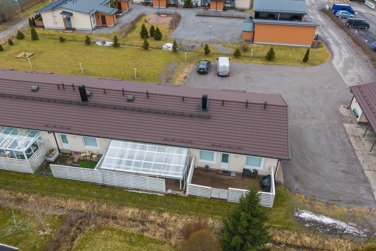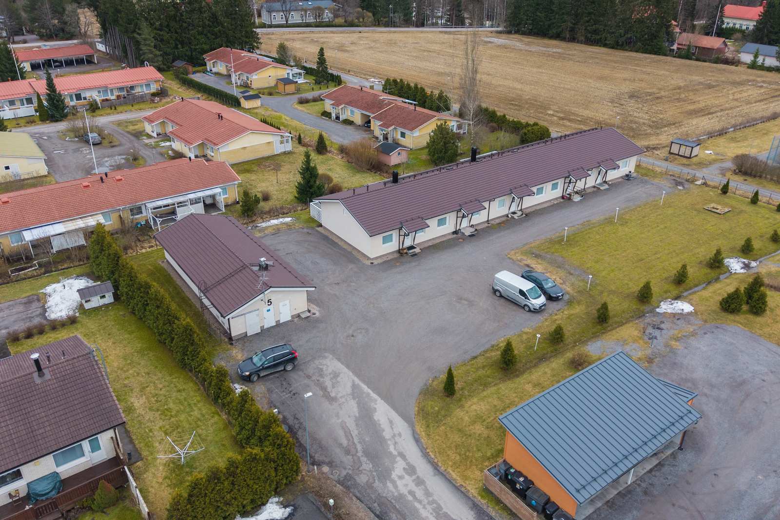 | Tehdyt korjaukset ja remontit | 2014: Autokatokseen tehty palokatko välikatolle ja samalla vahvistetty kattorakennetta. Katon lippojen liitokset korjattu. Lämmitykseen muutettu automaattisuntti. 2015:Lattialämmityksen vian haku ja korjaus asuntoihin 1 ja 5. 2016: Asunnot 2 ja 4 tehty kylpyhuoneen saumakorjauksia. Viemärikorjaus kunnan toimesta. 2018: Aidan rakentaminen. 2019: AS 2 saunaan lisätty ikkuna. 2020: As 5 keittiön kosteusvahinkokorjaus. Piipun muuraus. Autokatoksen ja varaston väliin lisätty palokatko. 2023:Ilmastoinnin puhdistus. |