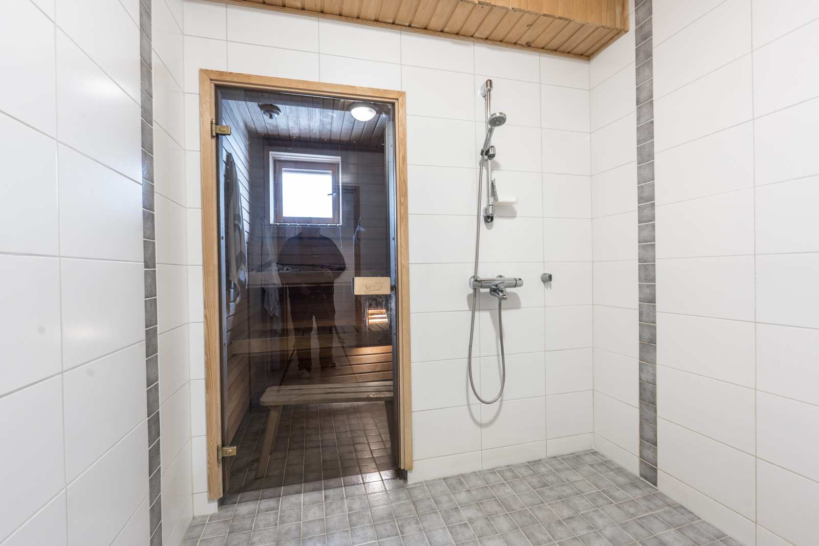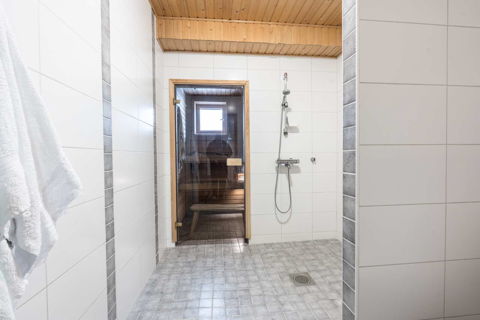 | Saunan pinnat | Seinät: puu Lattia: laatta |