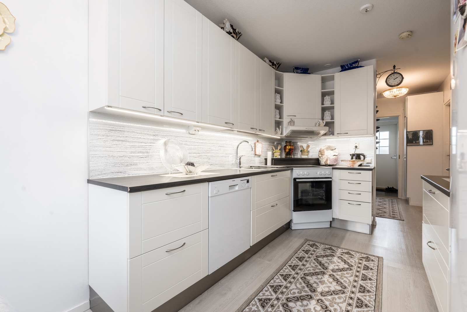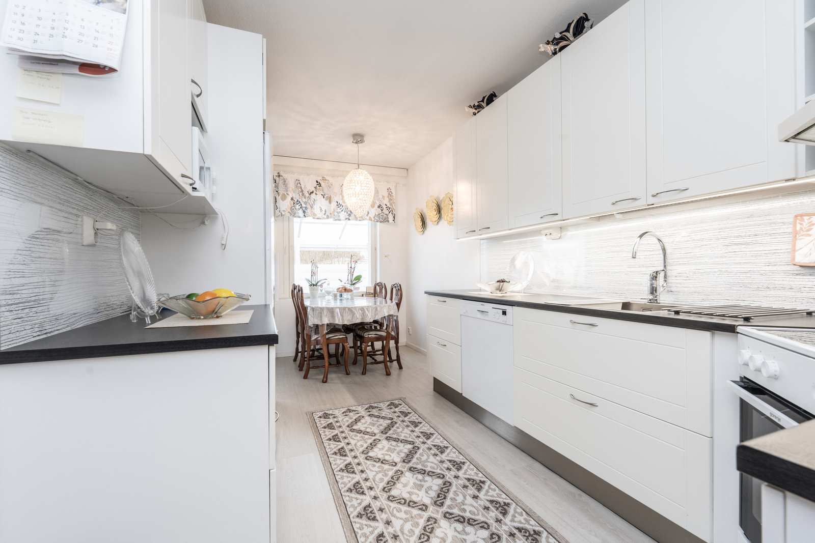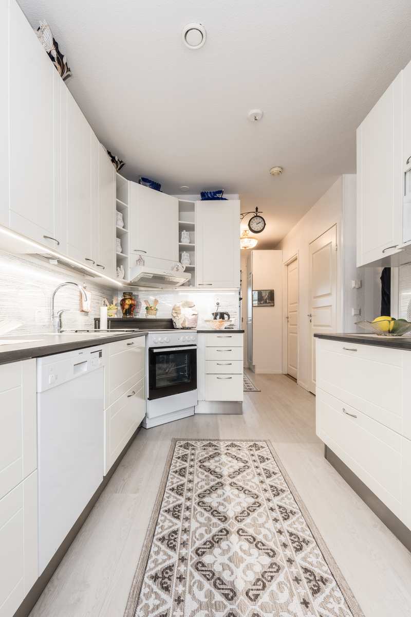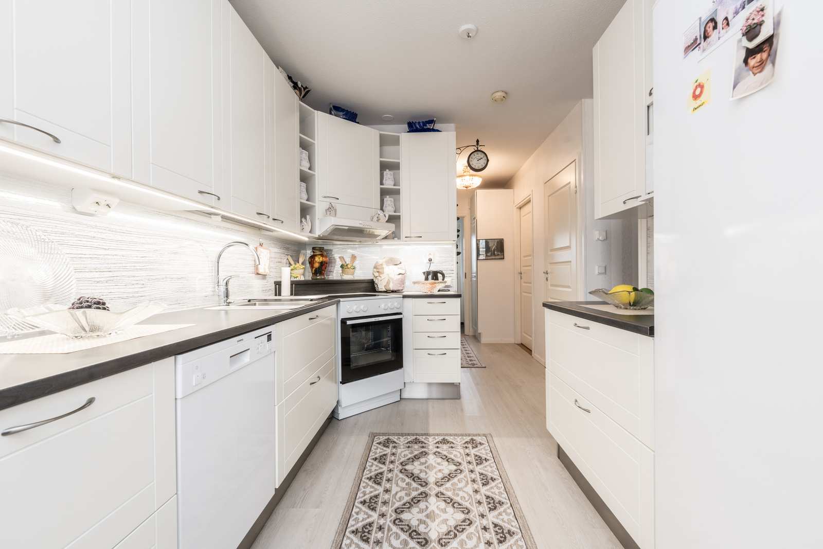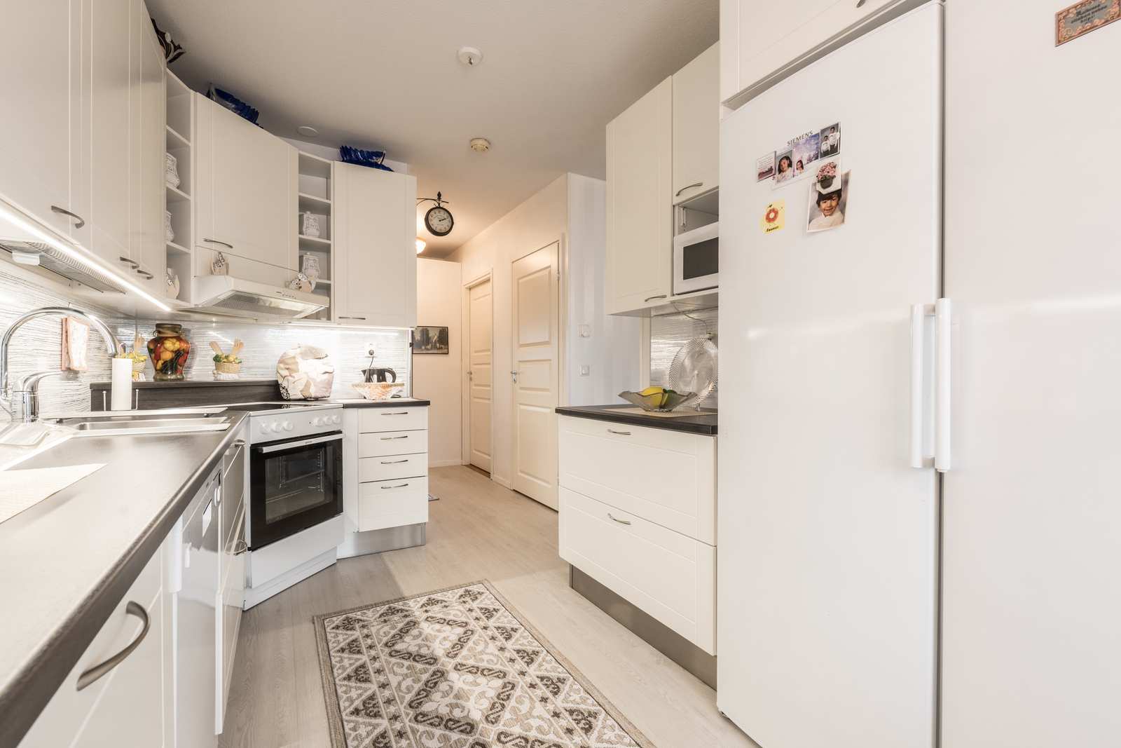 | Keittiön varustus | Jääkaappi ja pakastin: jääkaappi, pakastin Muut varusteet: liesituuletin, astianpesukone, kiinteät valaisimet Lattia: vinyyli Liesi/uuni: keraaminen |