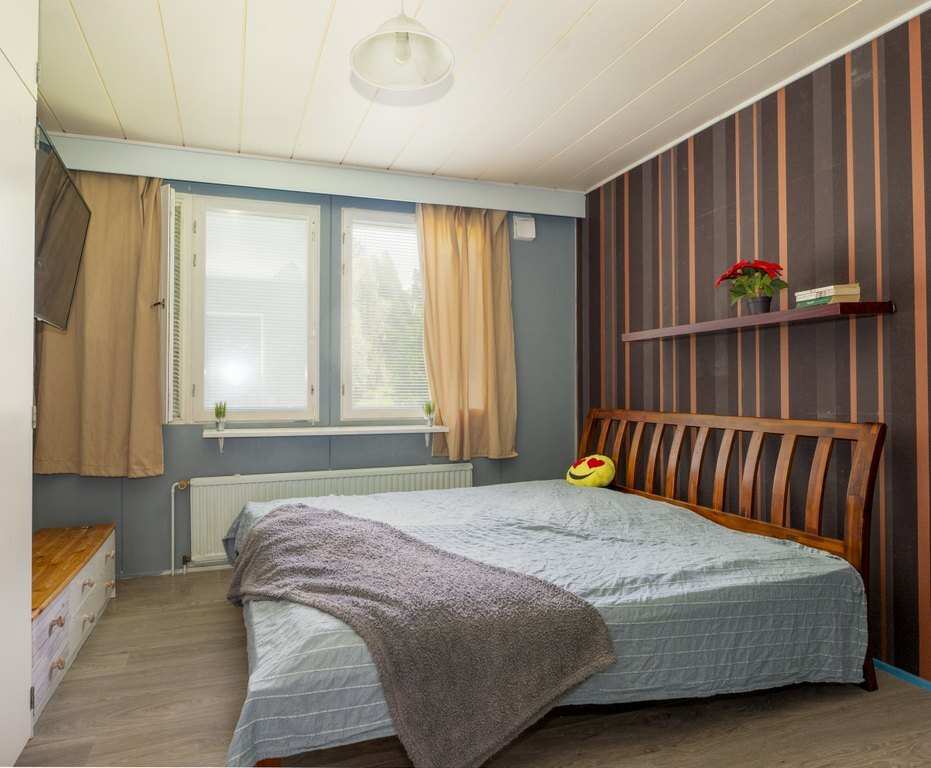 Makuuhuone | Seinät: maalattu, tapetti Lattia: muovi, laminaatti |