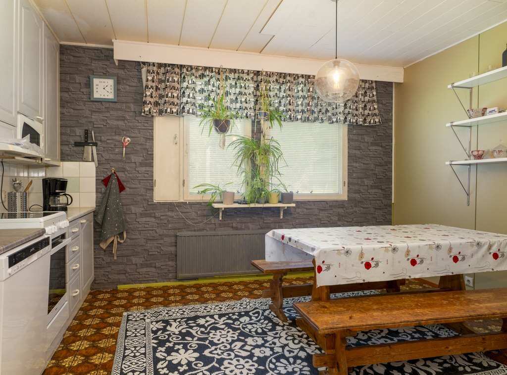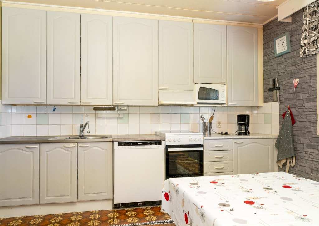 Keittiön varustus | Jääkaappi ja pakastin: jääkaappi Tasot: laminaatti Seinät: maalattu, tapetti Lattia: muovi Muut varusteet: liesituuletin, astianpesukone, kiinteät valaisimet Liesi/uuni: keraaminen |